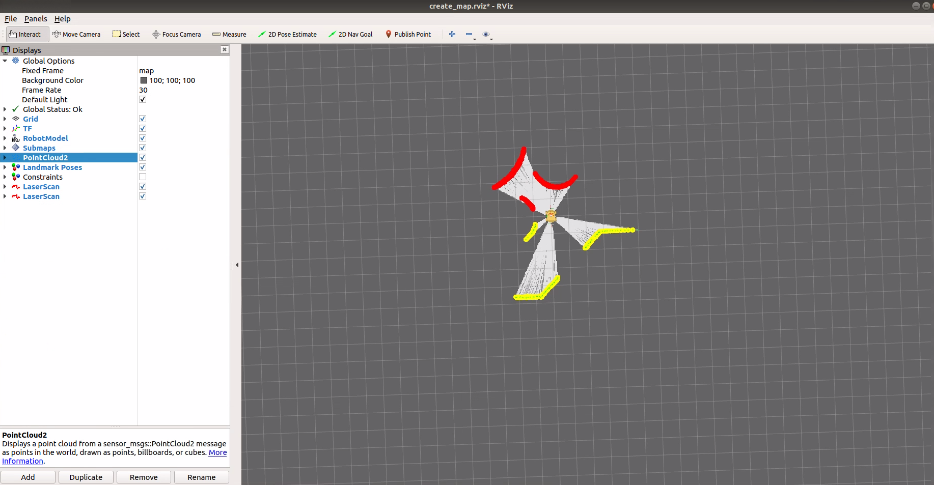 程序启动,RVIZ打开。此时,在远程端我们用键盘控制,车无法运动。