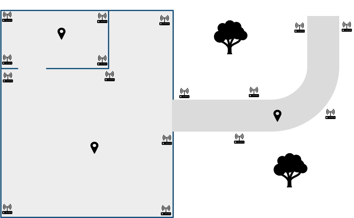 路由的放置位置需要保证无线电信号覆盖所有标签一般情况下使用默认的天线时能够达到100m 的覆盖半径。降低无线电通信速率并且使用全尺寸165mm、433MHz天线能进一步提高覆盖范围。