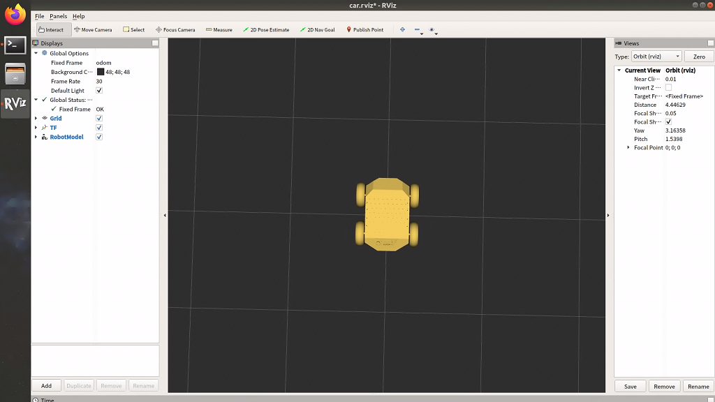 程序启动,可以看到 RVIZ 中有黄色的AP1车,使用键盘上下左右,车开始行走。